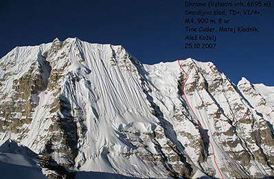 4 - "Smrdljiva Sled" (TD+: VI/4+ M4, 900 м) на Източния връх на Дромо (Drohmo East, 6995 м), Miha Valic/ alpinist.com