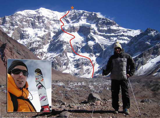 Времето засечено от началото (от върха на Аконкагуа) до подножието е 4 мин 50 сек. Спускането е станало след изкачване по нормалния път към върха.