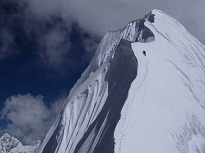 През следващите дни се движеха по безкрайния остър гребен, който нарекоха “Острието на нож кукри*”. Но през цялото време всеки от тях имаше готовност да скочи от другата страна на билото, ако партньорът му падне в противоположната. След преодоляването на многобройни жандарми, кули и предвършия, от които се откриваха изумителни гледки към разположените наблизо Чо Ойю. Лхотце и Еверест, стигнаха до върха в 13.30 часа на 17 октомври 2008 г. Борейки се със студа, страшно вкочанени, се върнаха до малката си палатка.