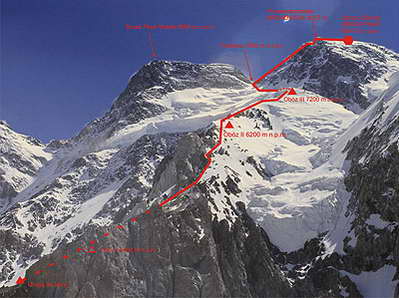 Маршрутът на опита за първо зимно изкачване на Броуд пик (Класическият маршрут към върха)