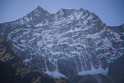 Линията на изкачването на Куангде Лхо (Kwangde Lho), завършило на върховото било