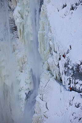 Уил Гед и И Джей Плимли на замръзналия водопад Хънлин