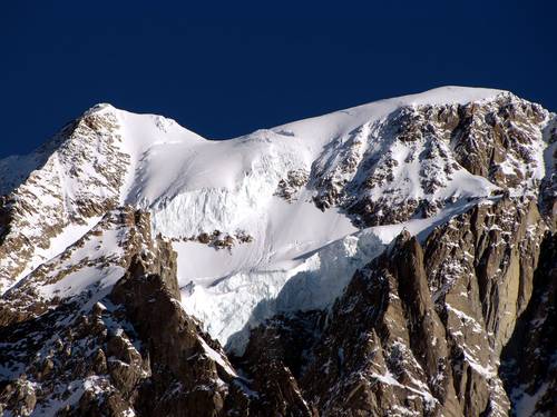 Югозападната стена на Гранд Жорас – почти в средата й е серакът, чието падане се предвижда.