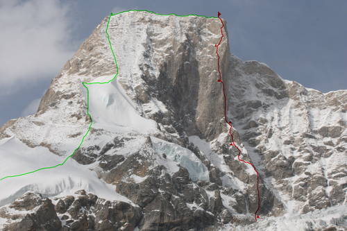 Първо изкачване, предполагаема 6B категория, Н. Бандалет, Д. Головченко, А. Малаховский, С. Михайлов, С. Нилов.