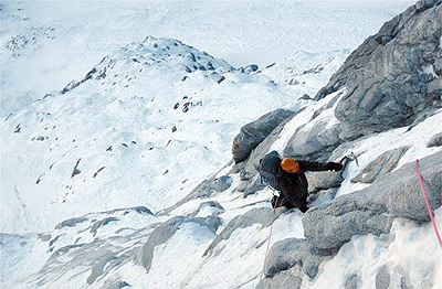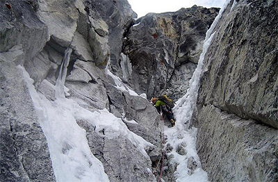 На 8 декември те тръгнаха по нея, но малко по-късно се върнаха заради счупване на две от сечивата им. Стартираха отново след три дни и атакуваха огромен скален винкел. На следващия ден, след катерене по микстови кулоари и един надвесен участък, стигнаха до северозападния гребен на 6050 м. По тъмно започнаха рапели (без стигане до върха), като бивакуваха още веднъж на слизане. Те оцениха 800-метровата си линия “The Phantom of the Opera” като M6+, WI4+, 6b, A2 (85°).