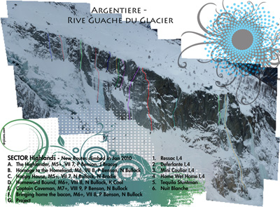 За три седмици Ник Бълък (Nick Bullock) и неколцина негови приятели прокараха четири нови тура по ледено-микстовата стена Рив-Гош (Rive Gauche, “Левия бряг”) в района на ледника Аржантиер (Argentiere), Френските Алпи.