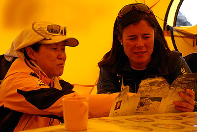 Двете конкурентки за Хималайската корона – О Еун-Сун и Едурне Пасабан в базовия лагер на Анапурна