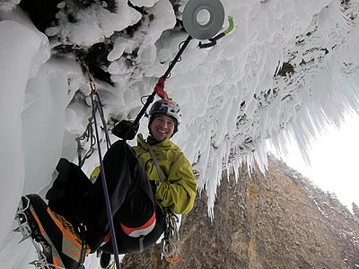 Преодолените през тази година поредни въжета от линията “Spray On” вървят по надвеса, а отчасти и по самия таван – през гигантски ледени висулки с формата на стилети. И което е невероятното – само при две движения по цялото протежение има допир до скала. Всичко останало е катерене по лед.