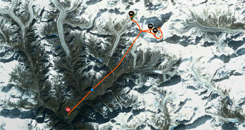 След старта си от 8848 м Бабу и Лхакпа полетяха на север, след което пилотът смени посоката и се насочи на юг, като част от полета бе над прочутия Западен гребен на Еверест (изкачен само два пъти досега – през 1979 г. от словенци и през 1984 г. от българи – бел. пр.). После въздушното приключение продължи над Западния циркус, ледопада Кхумбу, премина край Ама Даблам и завърши на пистата в околностите на Намче.
