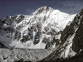 След като организираха преден базов лагер (4100 м), тръгнаха по кулоара в средната част на стената. По него стигнаха до мястото на първия си бивак на 5450 м – малка площадчица, на която можеха единствено да седнат. На другия ден, при лошо време, продължиха нагоре по снежно-леден терен. Втората им нощувка бе на 5950 м. Поредният ден не донесе подобряване на метеорологичните условия и преодоляването на следващите 150 м отне на японците 5 часа и половина, след което решиха да организират пореден бивак, малко под върховото било.