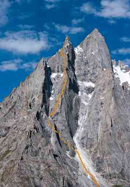 Новата линия се нарича “Jenga Spur” (V+, 5.11R, A0, 1050 м). Тя се оказа значително по-трудна от очакваното. Американско-канадската свръзка се надяваше да я премине в рамките на един ден, максимум за 20 часа. Но вместо очаквания терен, който може да се катери с взаимна осигуровка, тя се сблъска със следващи една след друга трудности 5.10, стигащи на места до 5.11.