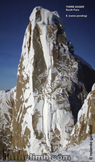 Южната стена на Торе Егер с линията на норвежците Бьорн-Ейвинд Артун и Оле Лийд Снимка: Роландо Гариботи