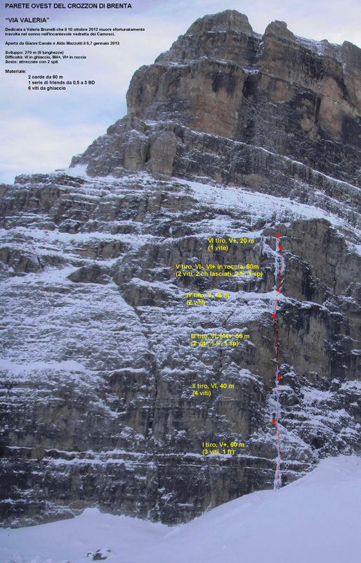 На 6 и 7 януари 2013 г. италианците Джани Канале (Gianni Canale) и Алдо Мазоти (Aldo Mazzotti) прокараха нов маршрут по западната стена на Крозон ди Брента в Доломитите – “Via Valeria” (270 м, VI на ледените участъци, M4+, VI+ на скалните).
