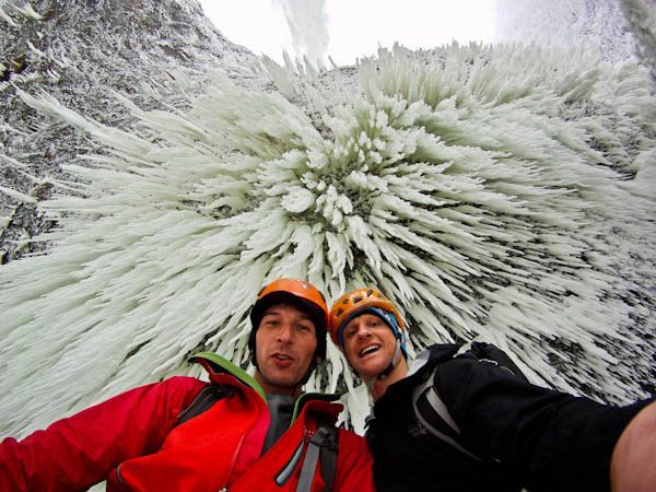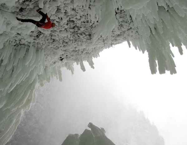 Тогава известният канадски майстор на катеренето по лед Уил Гед (Will Gadd, 44 г.) и британецът Тим Емет (Tim Emmett, 37 г.) завършиха двугодишния проект за леден маршрут по надвесения под ъгъл от 45 градуса таван на голямата пещера в съседство с водопада Хълмкън (Helmcken Falls)*.