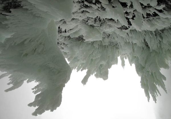 - Водопадът блъска водата в скалата и предизвиква образуване на специфични ледени форми, приличащи на пещерните сталактити, но не от стичаща се вода, а от нейните пръски. Извън това място никъде другаде по света не са срещани подобни ледени образувания, а катеренето по тях е уникално само по себе си…