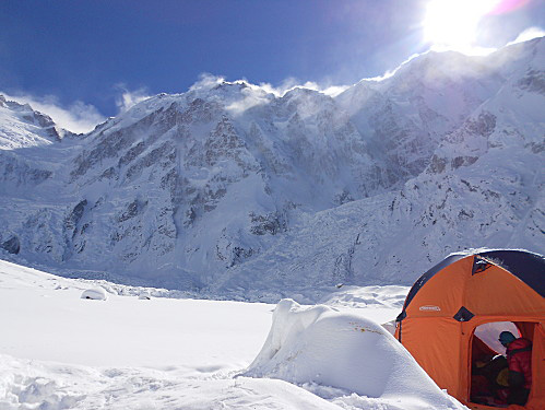 Лагер 1 на Броуд пик – отляво Шахийн Баиг (Shaheen Baig),