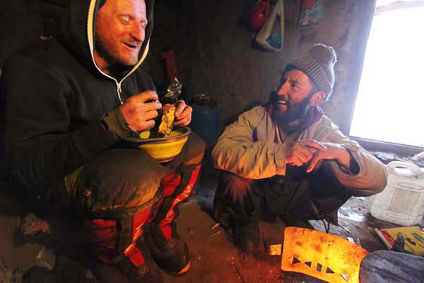 Томаш Мацкиевич в базовия лагер край пастирското селище Латабо