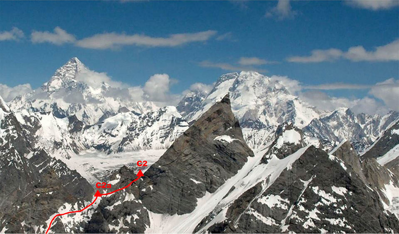 Лайла от юг с маршрута на Алекс Чикон и колегите му, на заден план са К-2 (8611 м) и Броуд пик (8047 м)