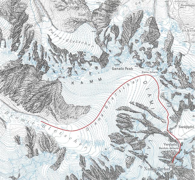 На 7 юни работещите за международната експедиция* под ръководството на Александра Джик (Aleksandra Dzik) пакистанци Карим Хайят (Karim Hayyat), Насер Удин (Naseer Uddin) и Шер Кан (Sher Khan) са организирали лагер 1 на около 5000 м по маршрута на Кинсхофер по западния или Диамирския склон на Нанга Парбат, който вече години наред е най-често посещаваният.