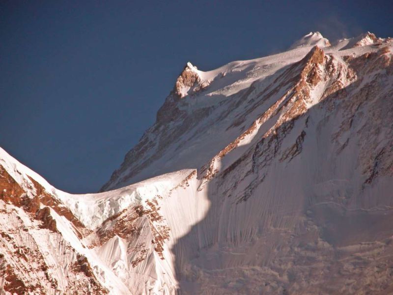 Поглед от Бимтанг (Bimtang) към върховото плато на Манаслу с Източната кула (East Pinnackle, 7992 м) и Главния връх