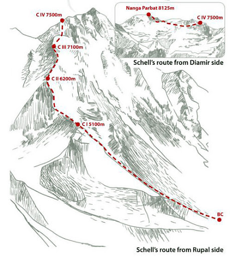 Вчера, четвъртък, 13 февруари, Симоне Моро (Simone Moro) и Давид Гьотлер (David Göttler) рано сутринта тръгнаха от лагер 1 (5600 м) и стигнаха до лагер 2 (6100 м). След къса почивка те се свързаха по сателитния телефон с австрийския метеоролог Карл Габл (Karl Gabl). Той потвърди, че събота (т. е. утре), 15 февруари, ще е най-подходящият ден за атака.