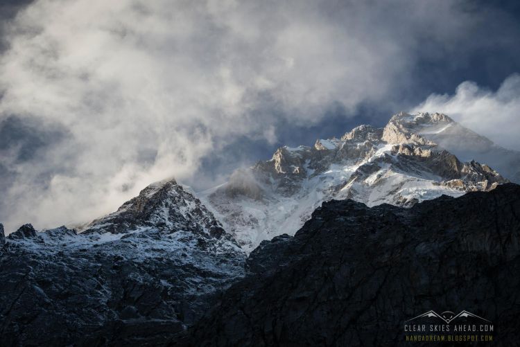Нанга Парбат – горната част на Рупалската стена и Гребена Мацено (на фона на небето)