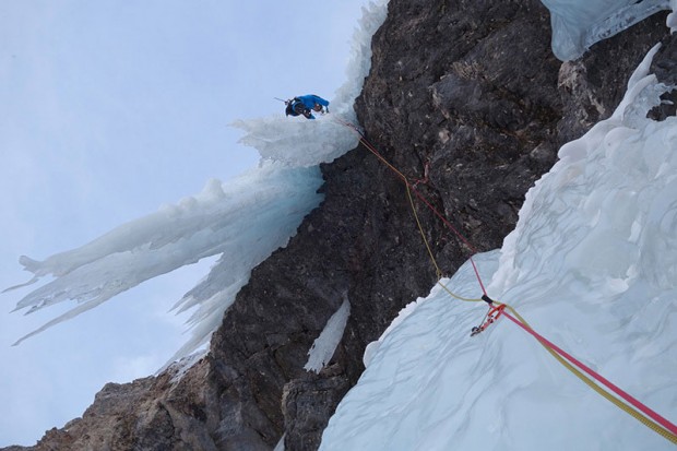 “Evolution” върви по формация от натечен лед непосредствено вляво от известния тур “La Piovra”.