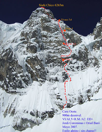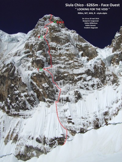 Авторите на тазгодишното изкачване избраха за своя цел лявата част на стената, на която неуспех бяха претърпели опитни алпинисти, между които Мик Фаулър (Mick Fowler), Саймън Йейтс (Simon Yates), Стийви Хаус (Steve House). След сериозна аклиматизация и старателно планиране силният френски екип тръгна по стената на 16 май т. г. в 03.30 часа сутринта. След четири дни катерене Робен Реве, Елиа Мийериу, Фредерик Дегуле и Бенжамен Гигоне стигнаха в алпийски стил до връхната точка на Сиула Чико (6265 м).