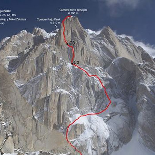 Както съобщава Корин Кьотцер (Correne Coetzer) от сайта Explorers.Web, Алберто Инюратеги (Alberto Iñurrategi), Хуан Валехо (Juan Vallejo) и Микел Сабалса (Mikel Zabalza) са се завърнали в родината си, след като прокараха премиерен маршрут по южната 1000-метрова отвесна стена на Пайю (Paiju, 6610 м) в Каракорум.