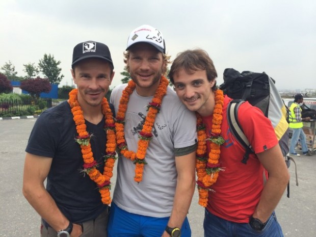 Себастиан Хааг, Бенедикт Бьом и Андреа Дзамбалди в Катманду