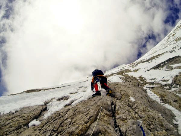 На 25 юли се събудиха рано и напуснаха бивака в 03.00 часа преди разсъмване. Теренът вече бе мисктов – скално-леден. Късно следобед стигнаха до предвърховия гребен и в 19.20 часа бяха на върха. Започна да се мръква и те почти незабавно предприеха спускане. Въпреки умората и почти непрекъснатите лавини през деня, в следващите 24 часа двамата стигнаха до базовия лагер.