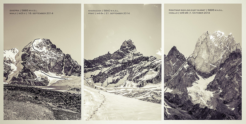 Андреас “Дрес” Абеглен (Andreas “Dres” Abegglen), Томас Зенф (Thomas Senf) и Щефан Зийгрист (Stephan Siegrist) се завърнаха наскоро с много сериозни успехи през едномесечното си пребиваване в Индия. Те направиха първи изкачвания на два девствени петхилядника и второ въобще стигане до известния и труден Киштвар Кайлаш (Kishtwar Shivling), чийто източен връх е висок 5885 м, а главният е 5935 м. Районът бе познат на Зийгрист, който през 2011 г. с двама свои колеги направи второ изкачване по нов маршрут на Серо Киштвар (Cerro Kishtwar, 6220 ).