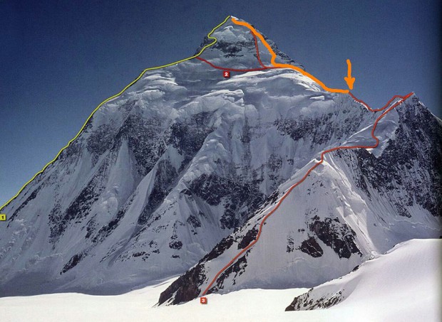 Базовият лагер (5000 м) се появява на ледника Годуин Ъстин на 24 юни. Лагер 1 е на 6100 м, а лагер 2 – на 6750 м, непосредствено под чучката с височина 6821 м.