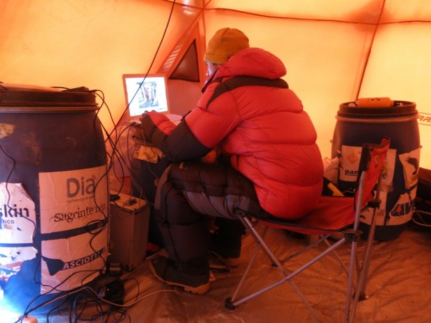 - Намираме се в лагер 3 (6600 м). Формациите, по които се изкачвахме, предложиха най-красивото катерене в живота ми. Утре (т. е. днес, 14 януари) тръгваме към 7200 м. След това се очертва прозорец хубаво време, подходящо за атака. Маршрутът е красив, но много труден. Вали, духа, но търпим. Ели е много корава. Дяволски студ.