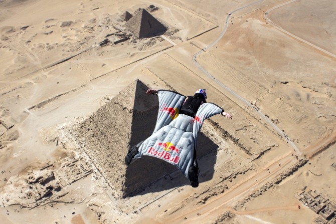 Египетските прирамиди са преживели всички превратности на историята, чумни епидемии и пясъчни бури. Днес са едно от най-посещаваните места в света. Доживяха и първия полет над тях с костюм-крило, осъществен от белгиеца Седрик Дюмон (Cedric Dumont) и завършил край Хеопсовата, наричана още Голямата пирамида в Гиза.