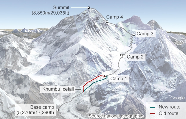 Според данни на ВВС, около 40 души, повечето от които шерпи, са загинали в ледопада. И тъкмо поради тази причина непалските и чуждестранните оператори, които работят в района, се съгласиха с преместването на маршрута в центъра на ледопада Кхумбу.