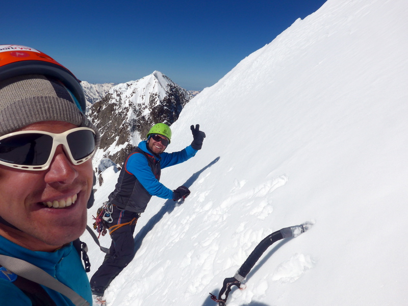 - по югозападния гребен на Тетнулд (4858 м, S3+, E3, наклон 40-50°).