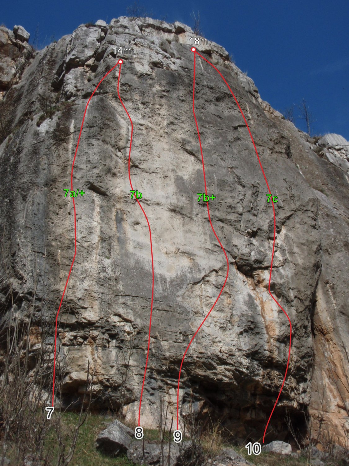 Категории: 5c+ ÷ 8b (5c+, 6a, 6a+, 6b+, 6c+, 7a, 7a/7a+, 7a+, 7b, 7b+, 7c, 8b)