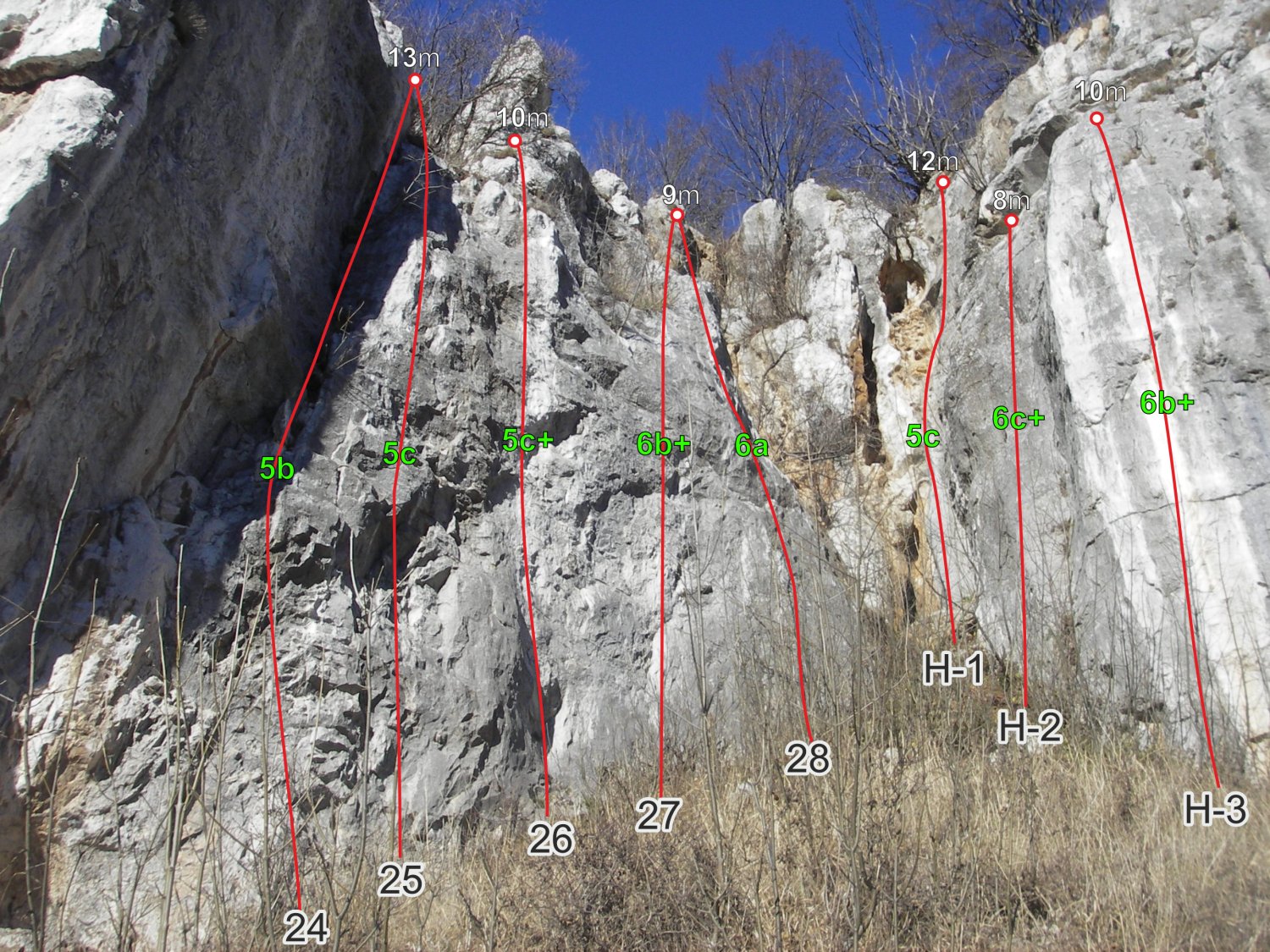 Категории: 5b ÷ 7c+ (5b, 5c, 5c+, 6a, 6a+, 6b, 6b+, 6c, 7a, 7a+, 7b, 7b+, 7c, 7c+)