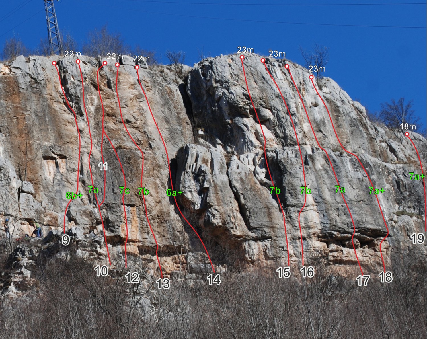 Категории: 5b ÷ 7c (5b, 5c, 5c+, 6a, 6a+, 6b, 6b+, 6c, 7a, 7a+, 7b, 7c)