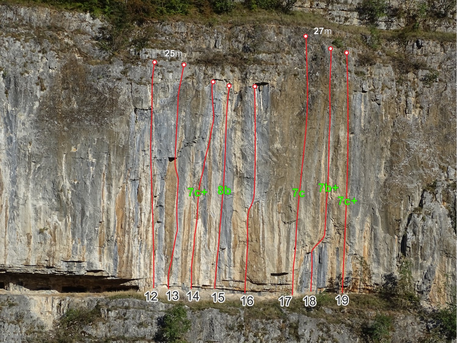 Категории: 5c+ ÷ 8b (5c+, 6a+, 6b, 6b+, 7a+, 7b, 7b+, 7c, 7c+, 8a, 8b)